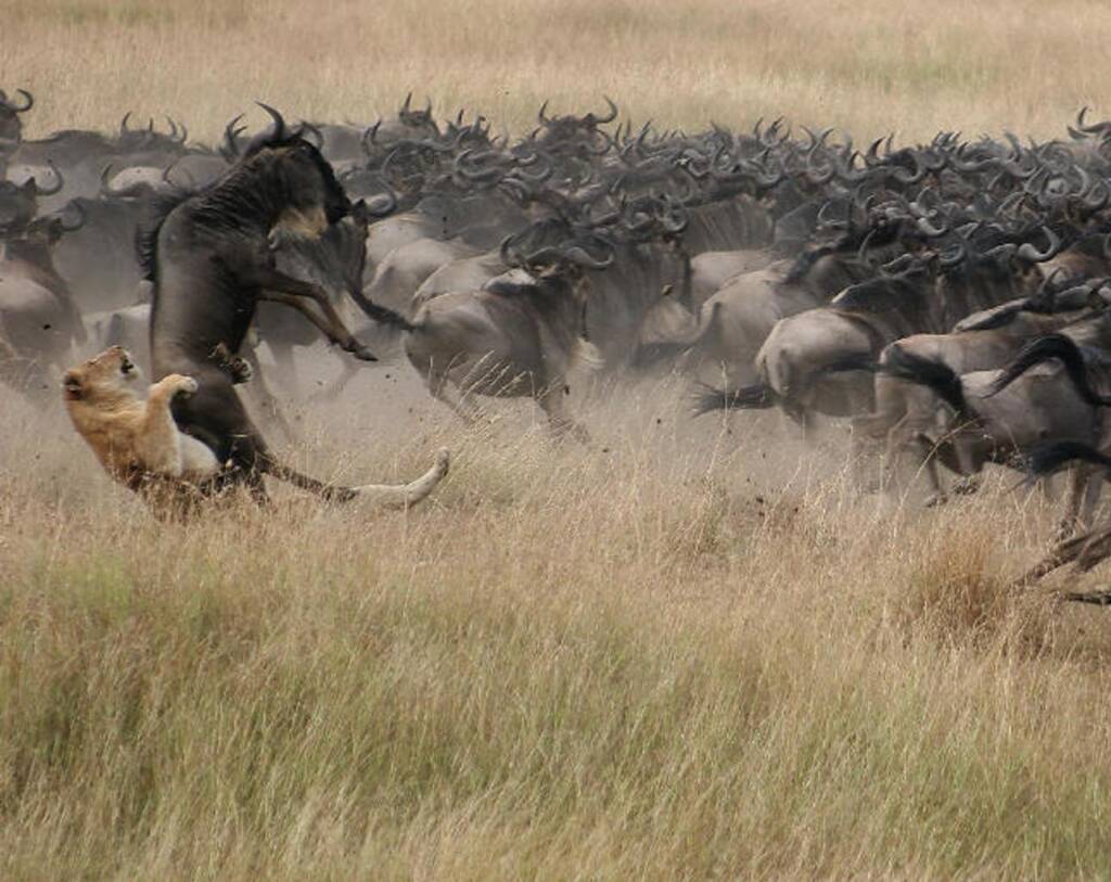 La Gran Migración es el mayor movimiento de manada de animales del planeta. De hecho, con hasta 1000 animales por km², las grandes columnas de ñus pueden verse desde el espacio.
